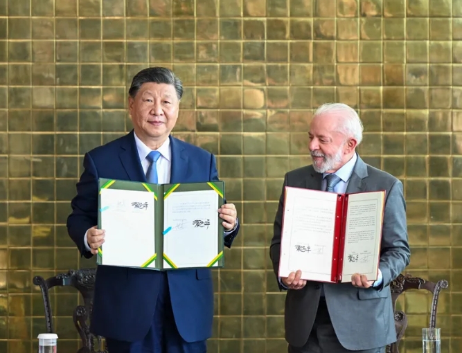 習(xí)近平同巴西總統(tǒng)盧拉共同簽署聯(lián)合聲明宣布攜手構(gòu)建中巴命運(yùn)共同體