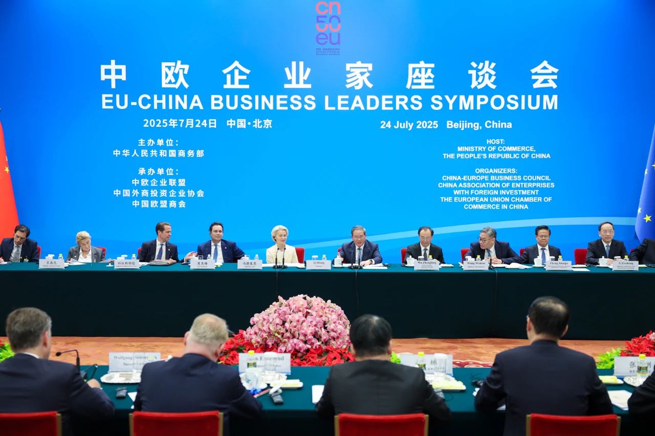 國(guó)務(wù)院總理李強(qiáng)7月24日下午在北京人民大會(huì)堂同歐盟委員會(huì)主席馮德萊恩共同出席中歐企業(yè)家座談會(huì)。近60位中歐商會(huì)和企業(yè)負(fù)責(zé)人出席。