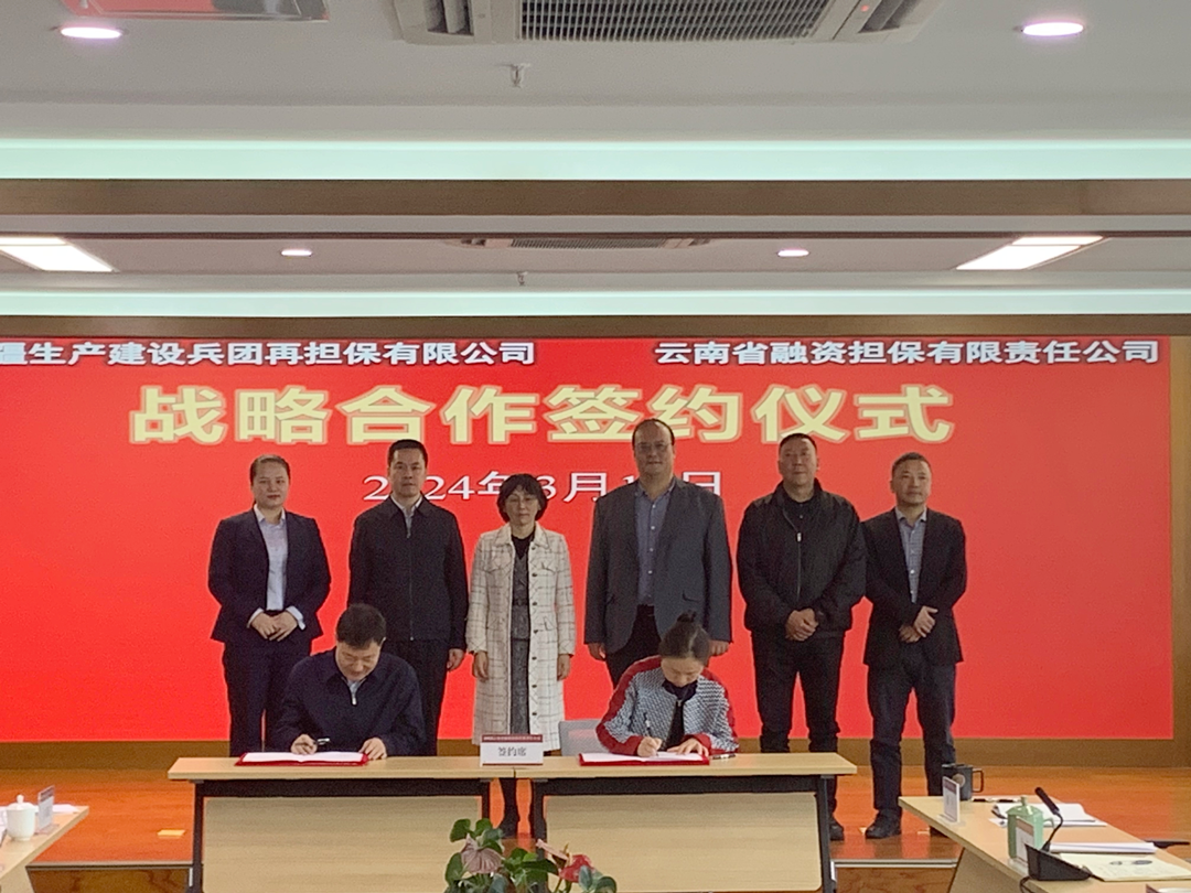 3月13日,云南金控集團所屬云南省融資擔(dān)保有限責(zé)任公司(以下簡稱省融資擔(dān)保公司)與新疆生產(chǎn)建設(shè)兵團再擔(dān)保有限公司(以下簡稱兵團再擔(dān)保有限公司)簽署戰(zhàn)略合作協(xié)議,并就進一步深化合作開展交流座談。兵團再擔(dān)保有限公司黨委委員、紀委書記、監(jiān)事會主席趙紹聚,云南金控集團黨委委員、副總裁蔡瓊出席會議并致辭。