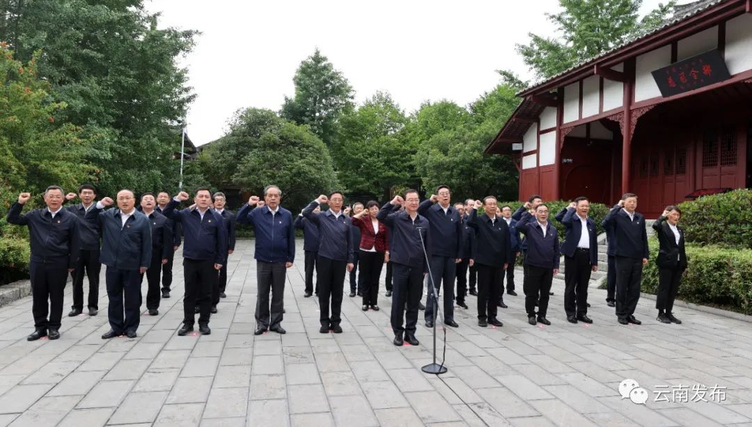 6月5日,參加省領(lǐng)導(dǎo)干部主題教育讀書班的全體學(xué)員在扎西會議會址,重溫入黨誓詞。