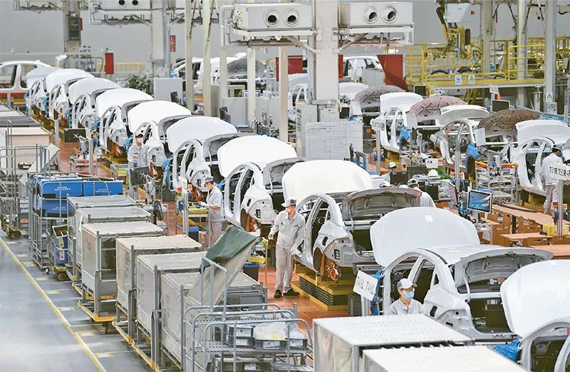 2023年4月12日,習(xí)近平總書記來(lái)到廣汽埃安新能源汽車股份有限公司考察。他走進(jìn)企業(yè)展廳、總裝車間、電池生產(chǎn)車間等,了解企業(yè)突破關(guān)鍵核心技術(shù)和推動(dòng)制造業(yè)高端化、智能化、綠色化等進(jìn)展情況。圖為廣汽埃安新能源汽車股份有限公司總裝生產(chǎn)線。新華社記者 鄧華/攝